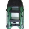 Для удобства нахождения в кокпите на ногах днище лодки натягивается алюминиевым пайолом с антискользящей насечкой.
