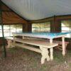 Большая палатка для долговременного лагеря. Двойной потолок, эффективная система вентиляции и съёмные антимоскитные сетки на окнах позволяют комфортно проводить жаркие дни. В случае похолодания можно «застеклить окна». Палатка отлично подходит для столовой, склада, кухни или госпиталя.