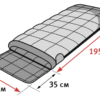 Два типа ткани. Светлая — дышащая ткань, выводит влагу изнутри спальника. Темная — усиленная ткань с влагозащитой.
